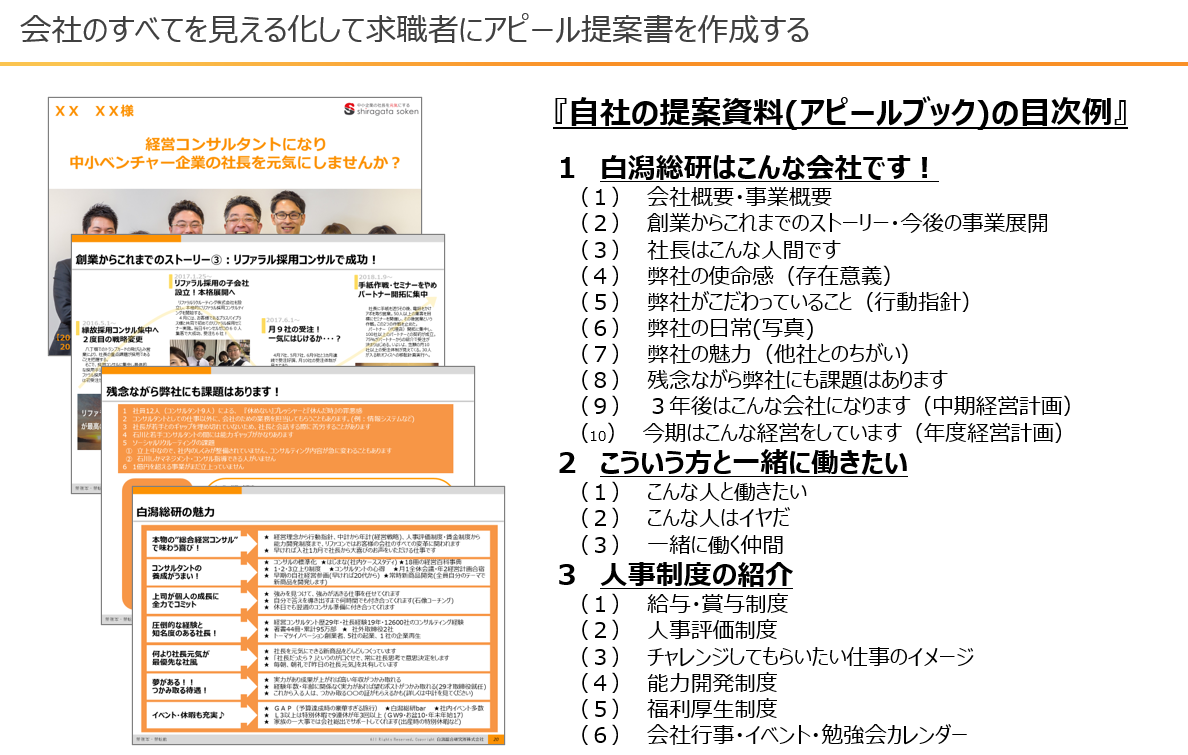 アピールブックを作るには、もちろん会社全体の情報を得る必要がありますから、