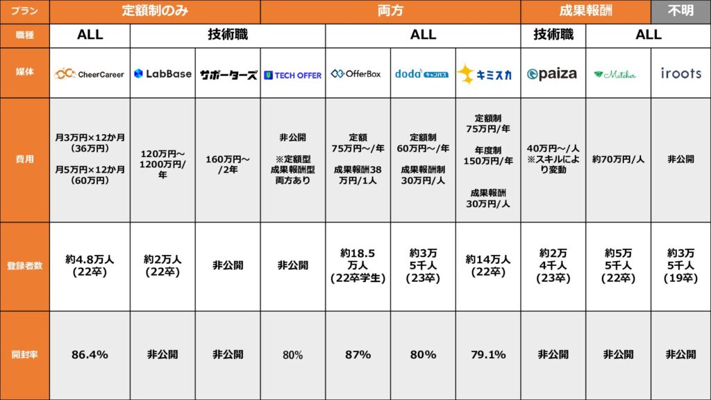 全10社ダイレクトリクルーティング媒体を徹底比較し、