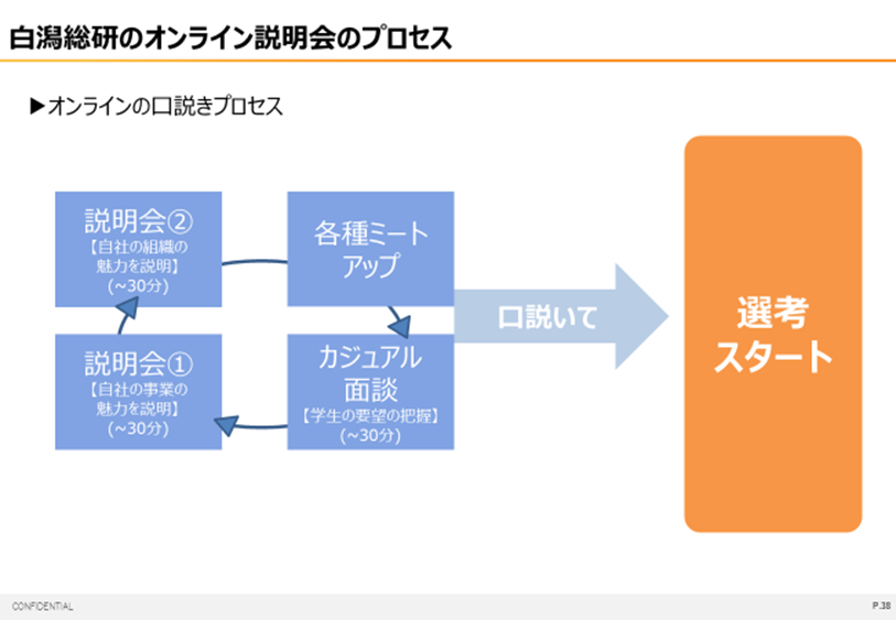 例えばこのような形で、1時間の説明会の30分に分割したり、