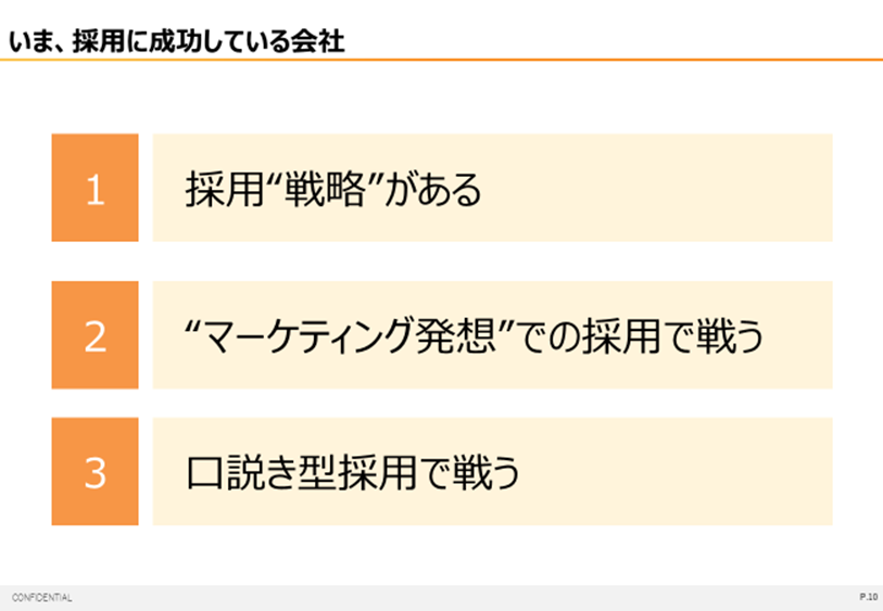 ずばり、採用に成功している中小企業の共通項は下記の3点です。