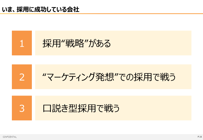 「採用戦略がある」とはつまり、全ての採用活動に狙いと意図が明確に存在しているということです。